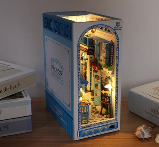 Ce book nook lumineux représente une charmante ruelle méditerranéenne pleine de détails et de couleurs. Placé entre vos livres, il crée une illusion de profondeur et transforme votre bibliothèque en véritable scène miniature. L’éclairage LED met en valeur chaque élément et apporte une ambiance chaleureuse. Fabriqué avec précision, il combine architecture, végétation et mobilier miniatures. À la fois décoratif et immersif, il invite à l’évasion à chaque regard. C’est un superbe objet pour personnaliser votre espace de lecture ou offrir en cadeau.