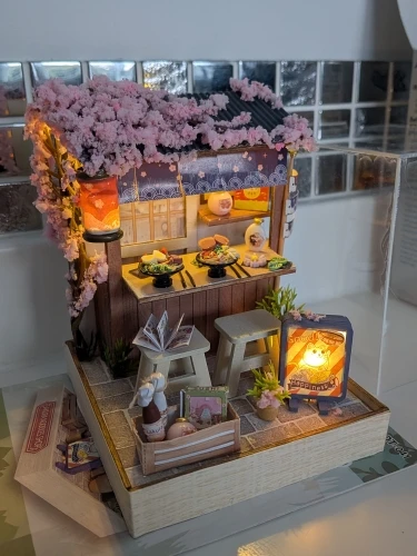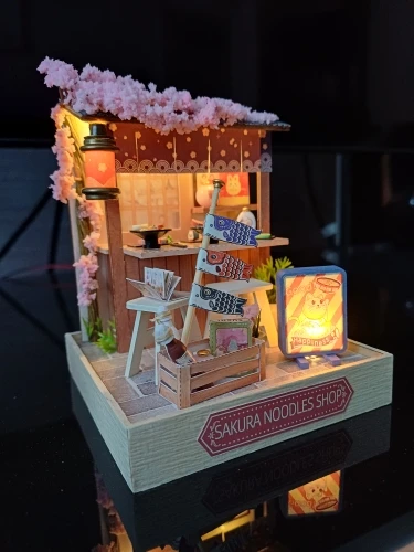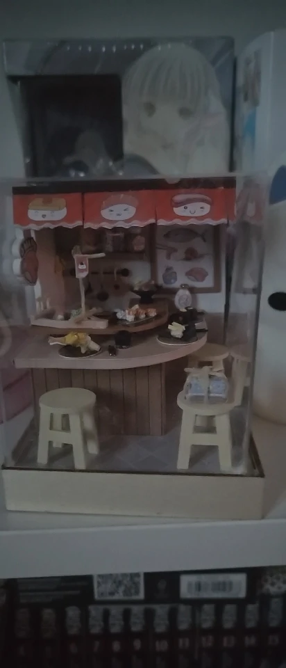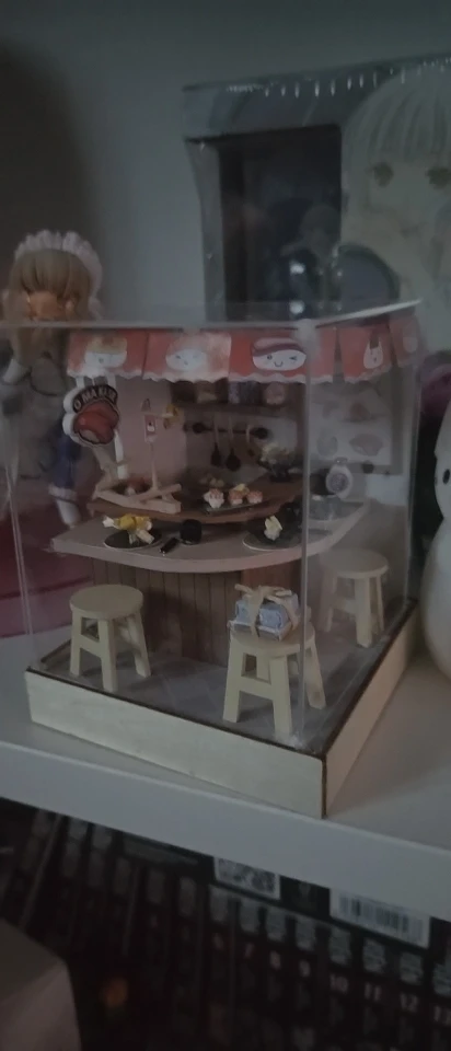 Super petit kit. Parfois frustrant et je me retrouve avec de la colle sur les doigts à cause de la complexité, mais je recommande quand même. Acheté pour un cadeau de Noël, et je suis sûr qu'elle va l'adorer. Je ne suis pas certain de recommander le cache-poussière en plastique... Il ne s'ajuste pas vraiment sur le modèle sans se casser sur les côtés, donc j'ai décidé de ne pas l'installer. Les lumières fonctionnent très bien aussi. Très cosy, je le recommande 😊